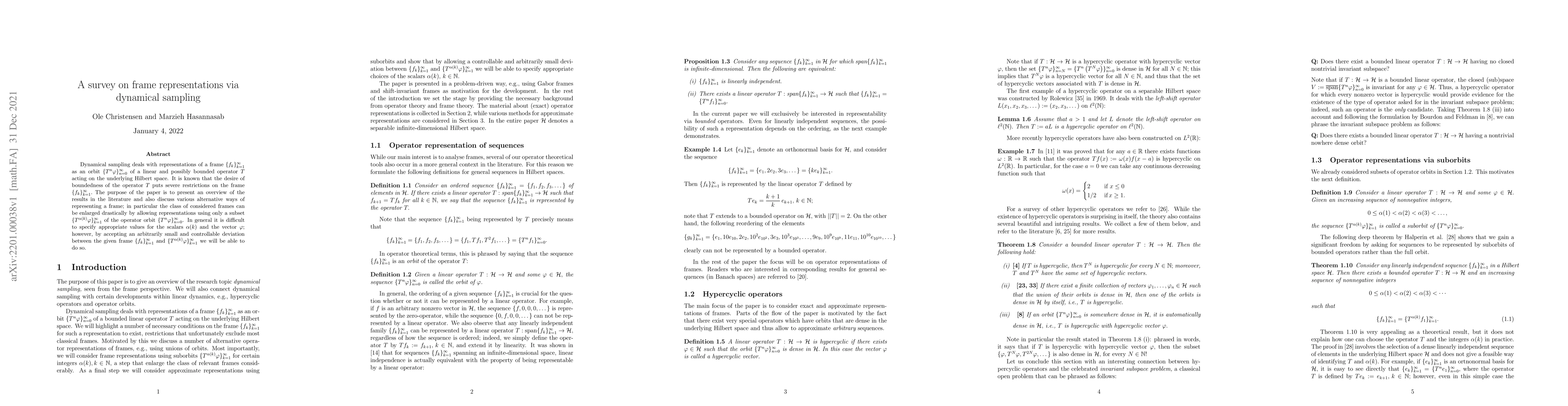Dynamical sampling deals with representations of a frame $\{ f_k \}_{k=1}^\infty$ as an orbit $\{ T^n \varphi \}_{n=0}^\infty$ of a linear and possibly bounded operator $T$ acting on the underlying Hilbert space. It is known that the desire of boundedness of the operator $T$ puts severe restrictions on the frame $\{ f_k \}_{k=1}^\infty$. The purpose of the paper is to present an overview of the results in the literature and also discuss various alternative ways of representing a frame; in particular the class of considered frames can be enlarged drastically by allowing representations using only a subset $\{ T^{\alpha(k)} \varphi\}^\infty_{k=1}$ of the operator orbit $\{ T^n \varphi \}_{n=0}^\infty$. In general it is difficult to specify appropriate values for the scalars $\alpha(k)$ and the vector $\varphi;$ however, by accepting an arbitrarily small and controllable deviation between the given frame $\{ f_k \}_{k=1}^\infty$ and $\{ T^{\alpha(k)} \varphi\}_{k=1}^\infty$ we will be able to do so.