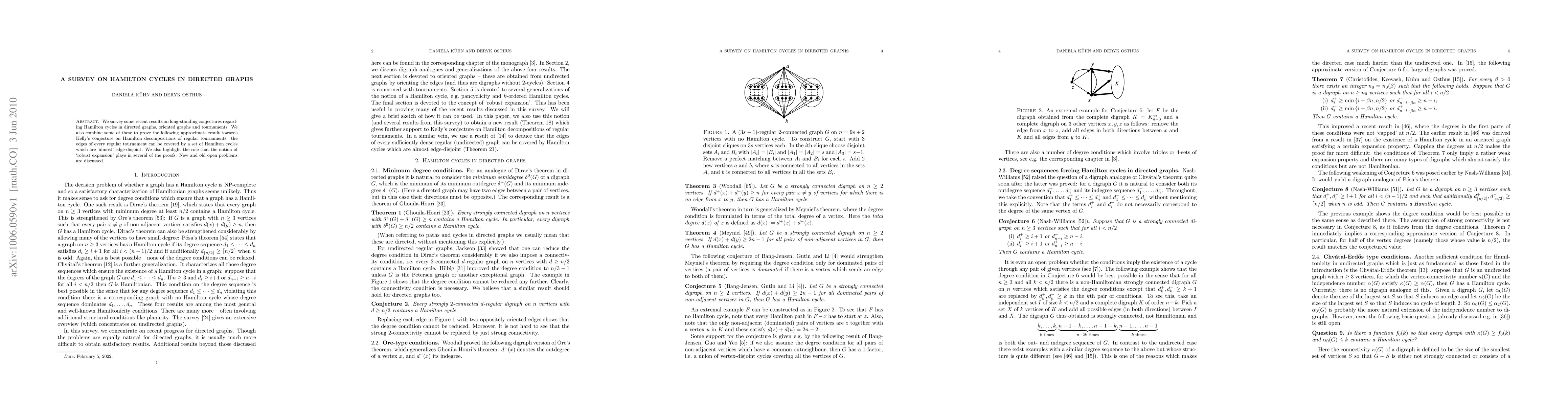 This paper surveys recent findings on Hamilton cycles in directed graphs, oriented graphs, and tournaments, proving an approximate result towards Kelly's conjecture on Hamilton decompositions in regular tournaments. The study emphasizes the role of "robust expansion" in these proofs and discusses new and existing open problems.