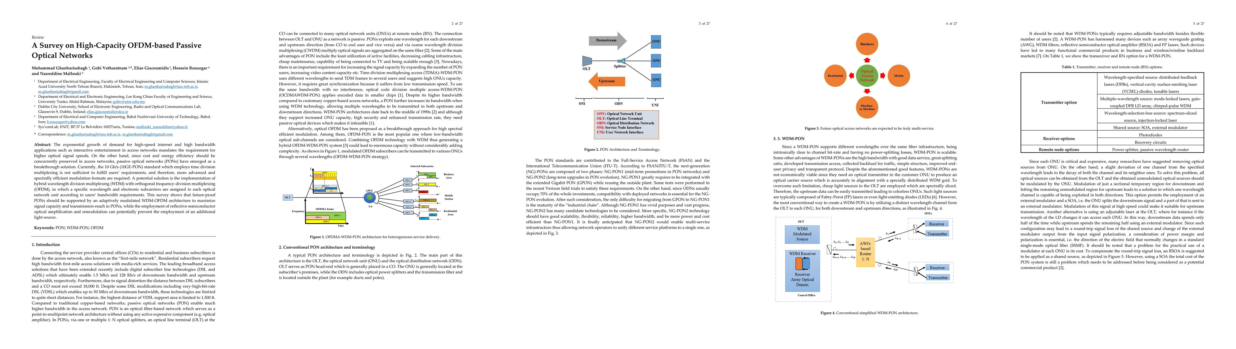 The exponential growth of demand for high-speed internet and high bandwidth applications such as interactive entertainment in access networks mandates the requirement for higher optical signal speeds. On the other hand, since cost and energy efficiency should be concurrently preserved in access networks, PONs have emerged as a breakthrough solution. This survey shows that future-proof PONs should be supported by an adaptively modulated WDM-OFDM architecture to maximize signal capacity and transmission-reach, while the employment of reflective semiconductor optical amplification and re-modulation can potentially prevent the employment of an additional light source.