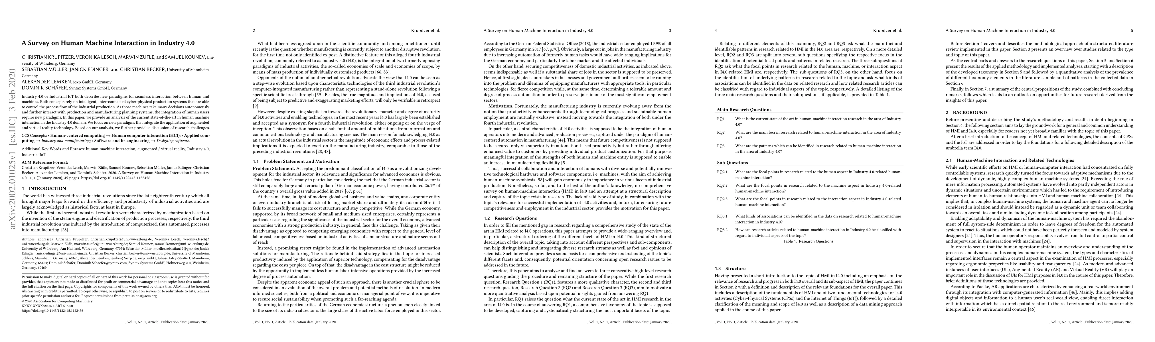 This paper analyzes current human-machine interaction in Industry 4.0, focusing on new paradigms using augmented and virtual reality technology. It discusses research challenges and implications for seamless collaboration between humans and intelligent machines.