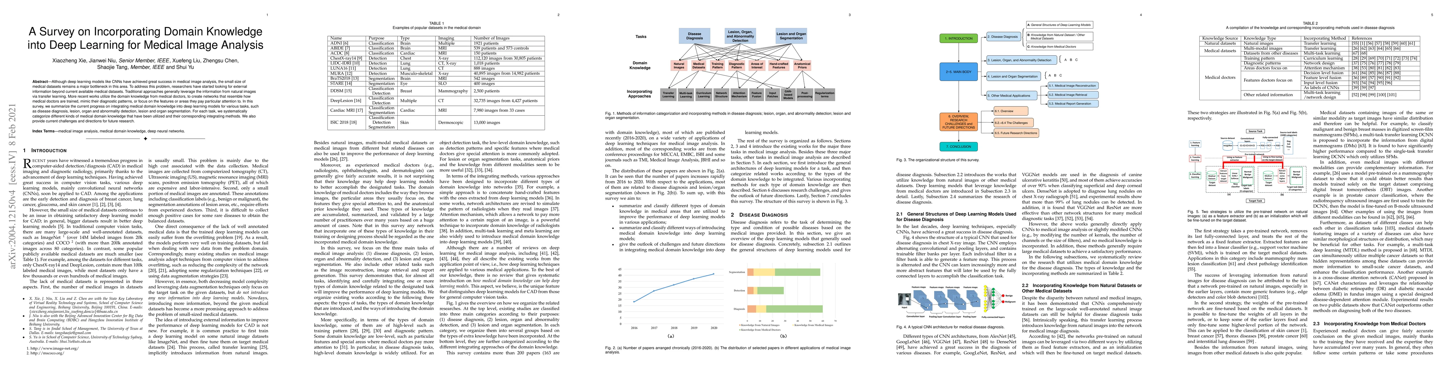 This paper surveys the integration of domain knowledge from medical experts into deep learning models for medical image analysis, addressing the challenge of small medical datasets. It categorizes various types of domain knowledge and their integration methods for tasks like disease diagnosis and lesion detection, highlighting current challenges and future research directions.