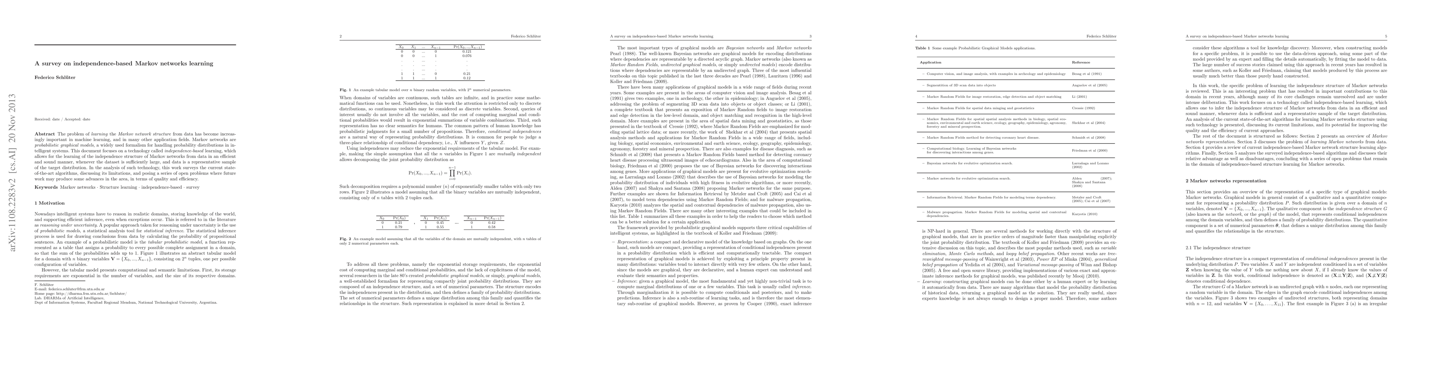 This paper surveys the state-of-the-art techniques for learning Markov network structures using independence-based methods, highlighting current limitations and proposing future research directions for improving efficiency and quality, especially in data-scarce scenarios.