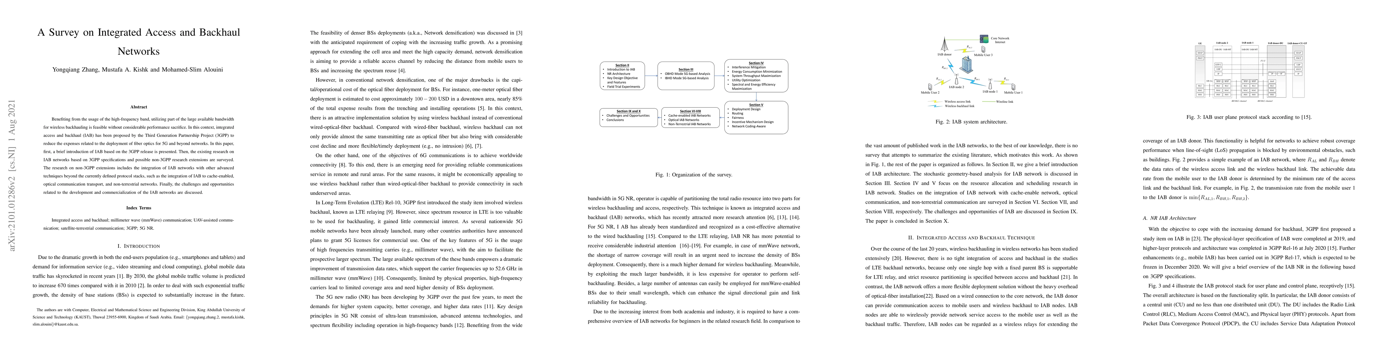 This paper introduces integrated access and backhaul (IAB) networks based on 3GPP standards, surveys existing research, and discusses their integration with cache-enabled networks, optical communication, and non-terrestrial networks. It also highlights challenges and opportunities in developing and commercializing IAB networks.