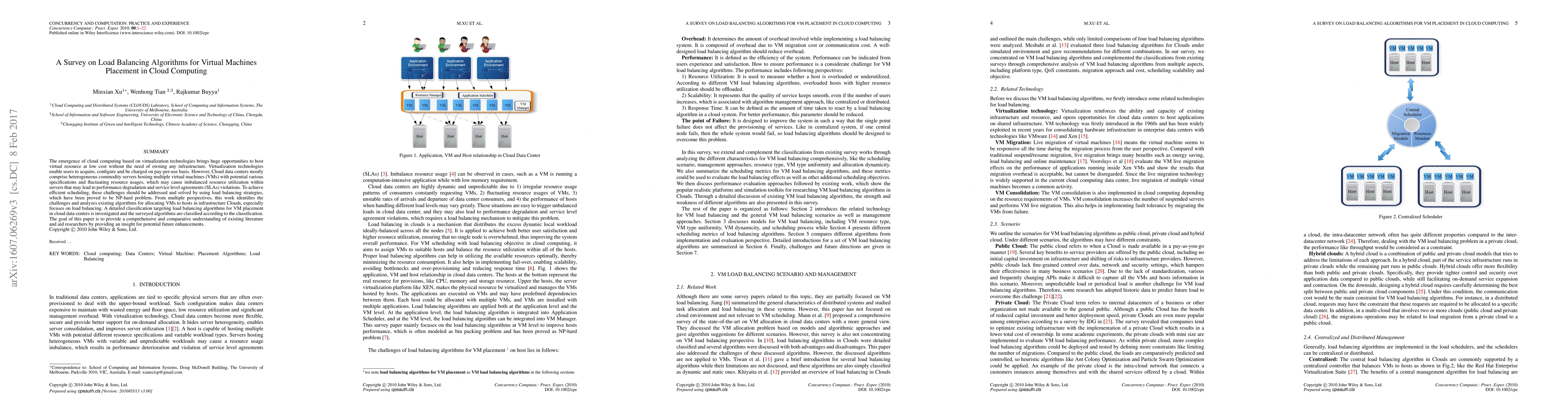 This paper surveys load balancing algorithms for virtual machine (VM) placement in cloud computing, addressing the challenges of resource utilization and performance degradation in heterogeneous data centers. It classifies and analyzes existing algorithms to provide a comprehensive understanding and guide future research enhancements.