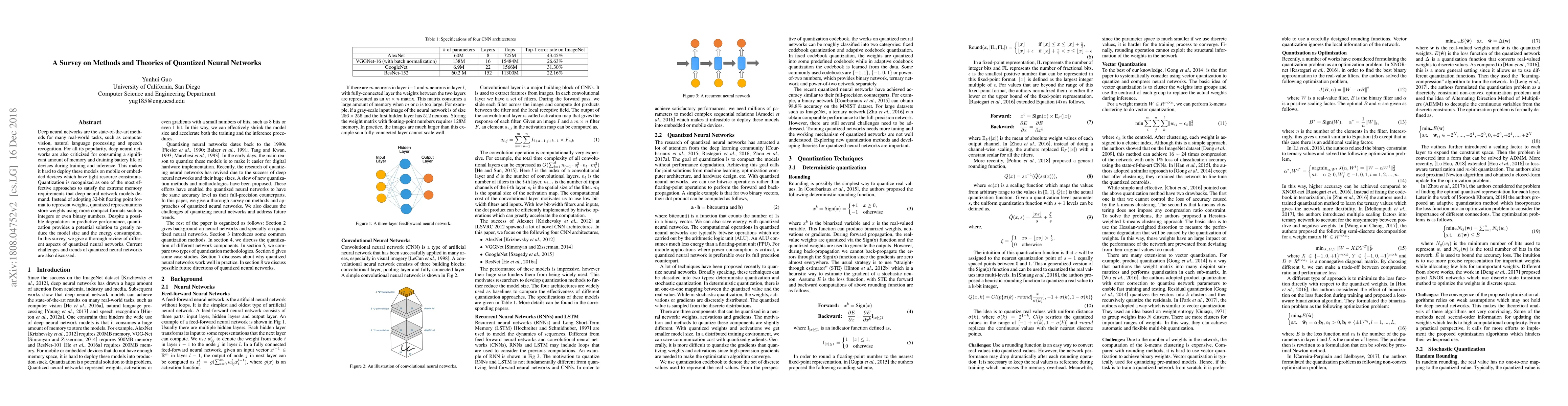 This paper surveys methods and theories of quantized neural networks, highlighting how quantization reduces memory and energy consumption at the cost of some performance degradation, and discusses current challenges and trends in the field.