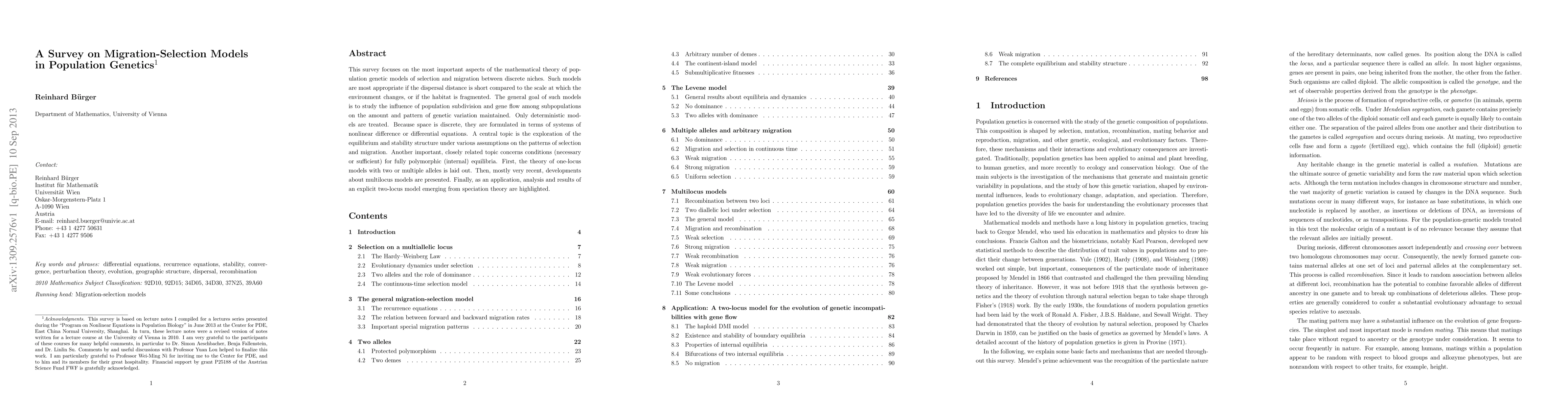 This survey explores mathematical models in population genetics that study genetic variation under population subdivision and gene flow, using deterministic, discrete-space models. It covers one-locus and multilocus models, focusing on equilibrium, stability, and polymorphic equilibria conditions, with a two-locus model application from speciation theory.