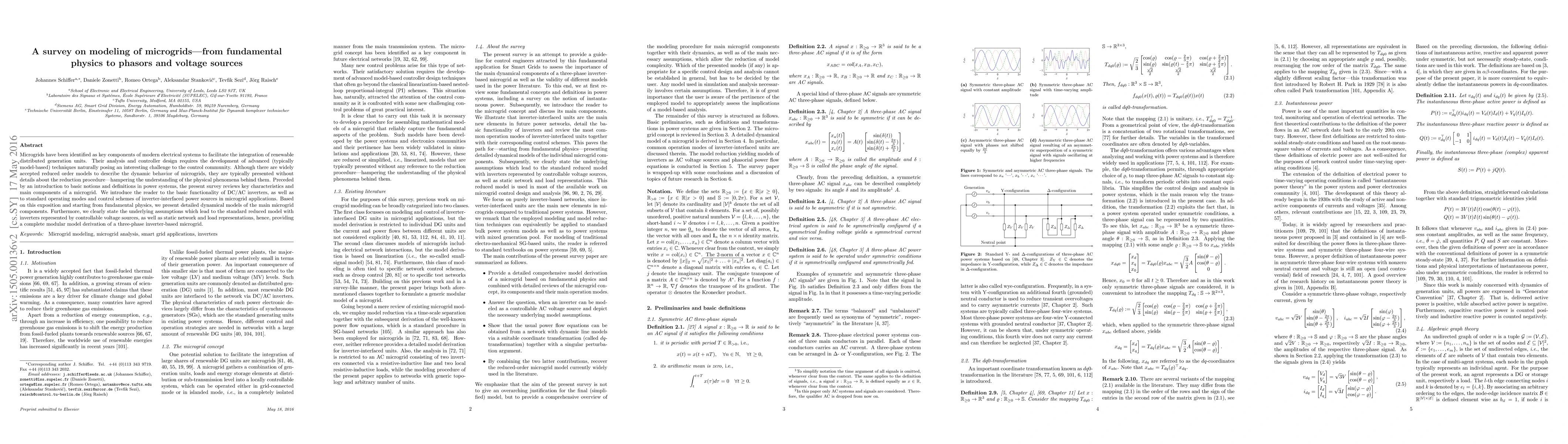 This paper is a comprehensive survey on modeling microgrids, starting from fundamental physics to phasor and voltage source representations. It introduces microgrid components, inverter functionalities, and control schemes, then details the derivation of a modular model for a three-phase inverter-based microgrid, clarifying assumptions behind simplified models.