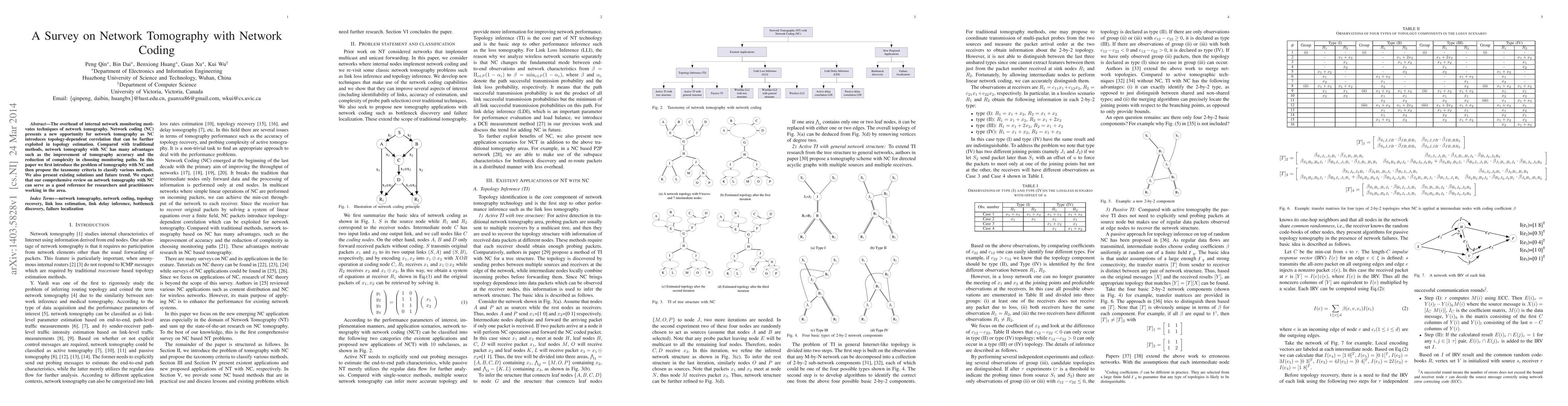 The overhead of internal network monitoring motivates techniques of network tomography. Network coding (NC) presents a new opportunity for network tomography as NC introduces topology-dependent correlation that can be further exploited in topology estimation. Compared with traditional methods, network tomography with NC has many advantages such as the improvement of tomography accuracy and the reduction of complexity in choosing monitoring paths. In this paper we first introduce the problem of tomography with NC and then propose the taxonomy criteria to classify various methods. We also present existing solutions and future trend. We expect that our comprehensive review on network tomography with NC can serve as a good reference for researchers and practitioners working in the area.