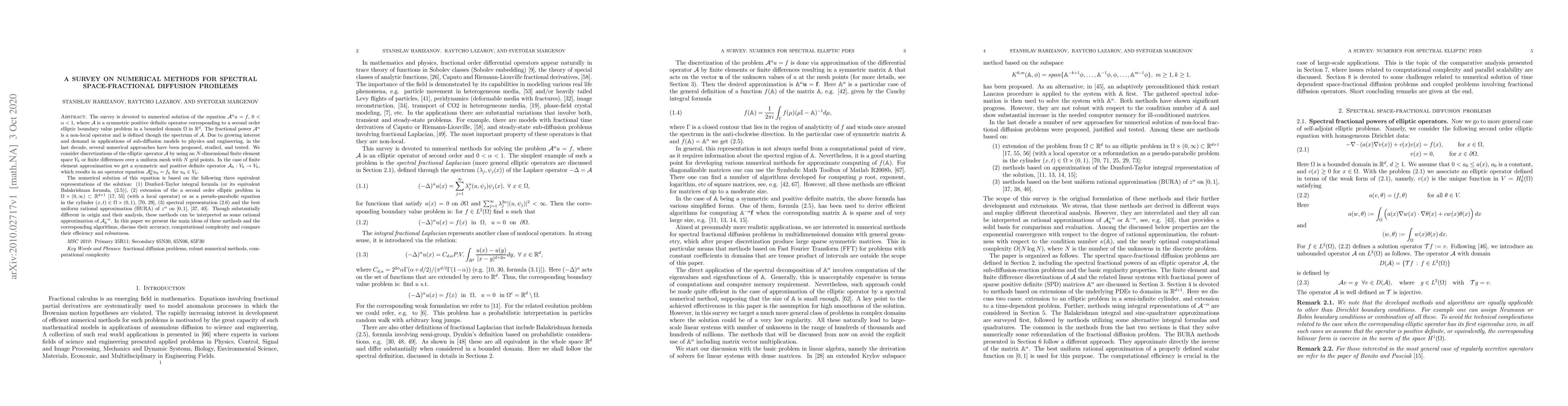 A survey on numerical methods for solving spectral space-fractional diffusion equations, which help model sub-diffusion in physics and engineering, is presented, discussing their accuracy, complexity, and efficiency.