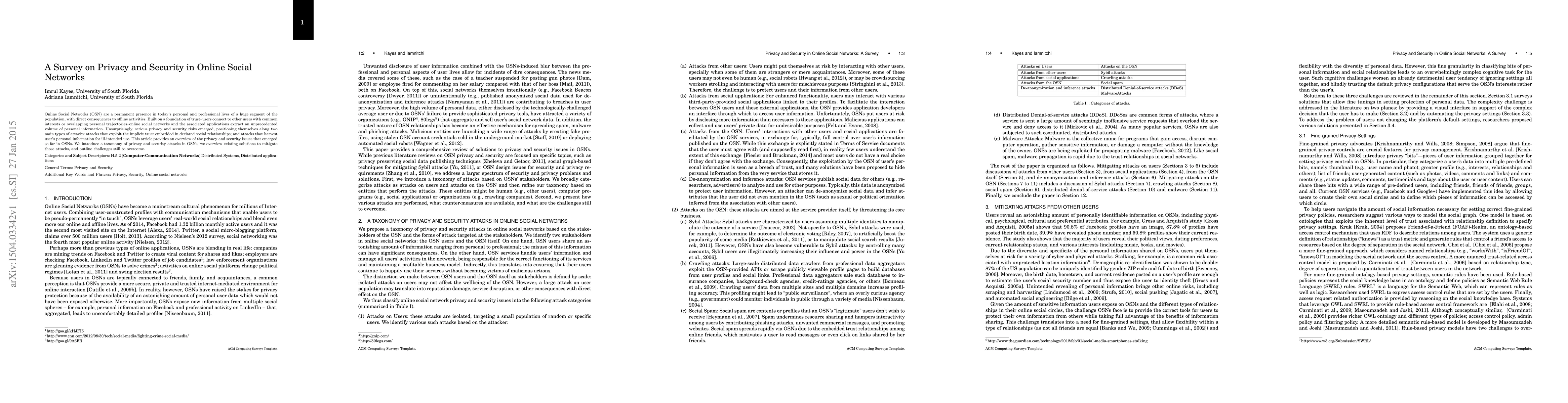 This paper reviews privacy and security risks in Online Social Networks, categorizing attacks exploiting trust and personal data misuse. It surveys existing mitigation strategies and highlights ongoing challenges.