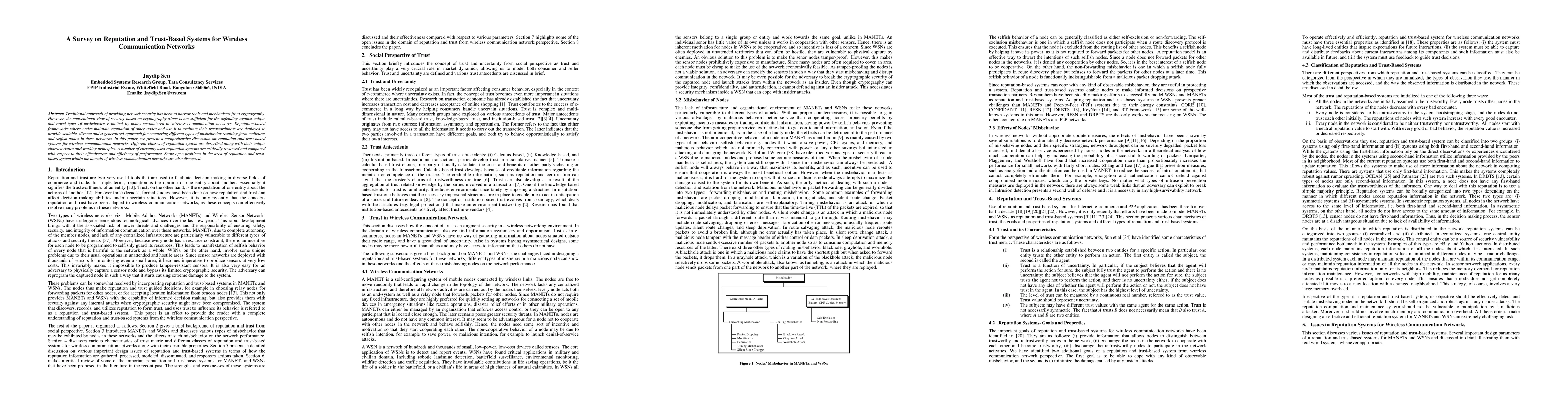This paper surveys reputation and trust-based systems for wireless communication networks, highlighting the limitations of traditional cryptography in addressing novel node misbehavior. It discusses various reputation systems, reviews their effectiveness, and identifies open problems in the field.