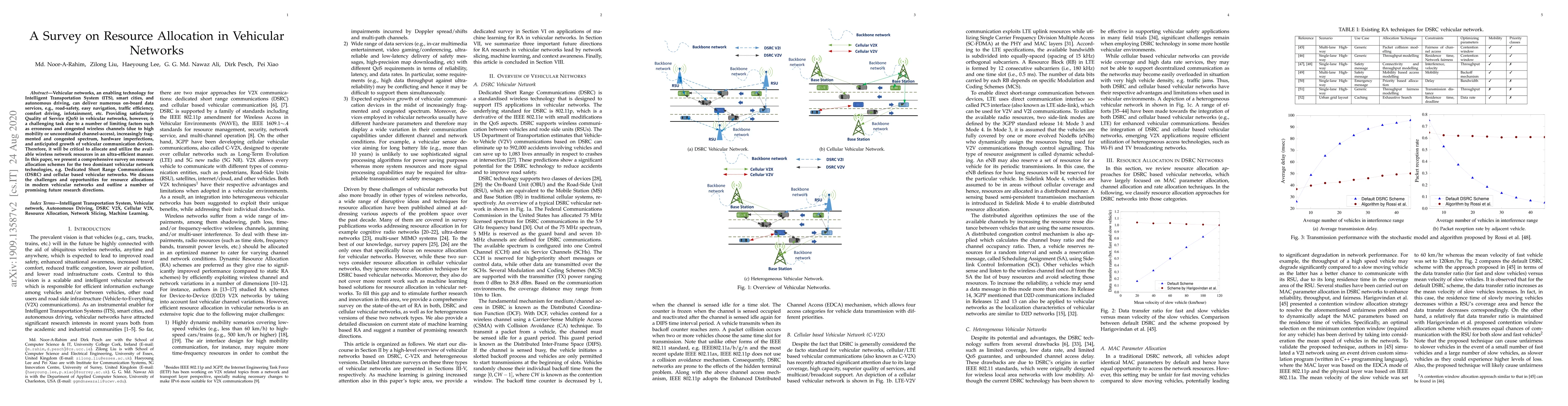This paper provides a comprehensive survey on resource allocation strategies in vehicular networks, focusing on DSRC and cellular-based systems. It highlights the challenges of efficient resource utilization amidst high mobility and spectrum congestion, and outlines future research directions for improving Quality of Service.