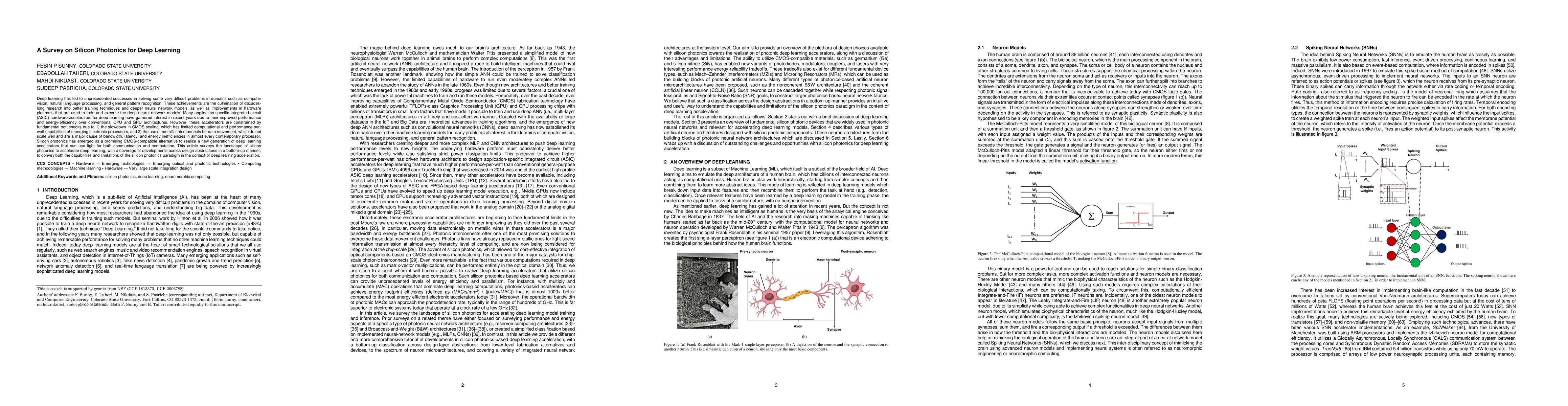 This paper surveys silicon photonics as a promising CMOS-compatible technology for deep learning accelerators, addressing the limitations of current ASICs due to CMOS scaling and metallic interconnect inefficiencies. It explores silicon photonics' potential to enhance performance and energy efficiency through light-based communication and computation.