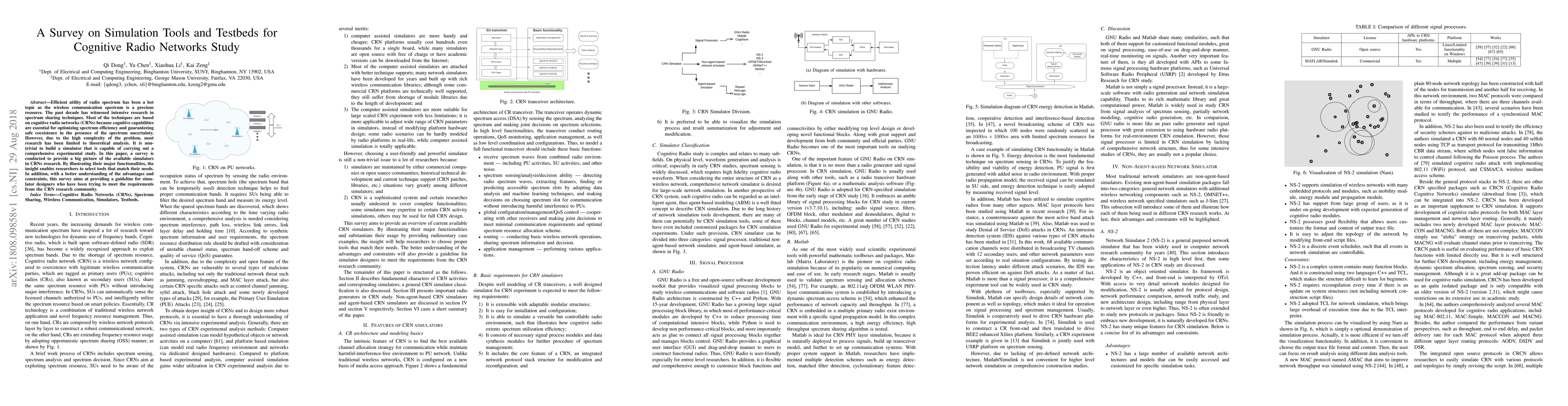 Efficient utility of radio spectrum has been a hot topic as the wireless communication spectrum is a precious resource. The past decade has witnessed intensive research in spectrum sharing techniques. Most of the techniques are based on cognitive radio networks (CRNs) because cognitive capabilities are essential for optimizing spectrum efficiency and guaranteeing safe coexistence in the presence of the spectrum uncertainty. However, due to the high complexity of the problem, most research has been limited to theoretical analysis. It is non-trivial to build a simulator that is capable of carrying out a comprehensive experimental study. In this paper, a survey is conducted to provide a big picture of the available simulators in CRNs research. By illustrating their major functionalities, the insight enables researchers to select tools that match their needs. In addition, with a better understanding of the advantages and constraints, this survey aims at providing a guideline for simulator designers who have been trying to meet the requirements from the CRN research community.