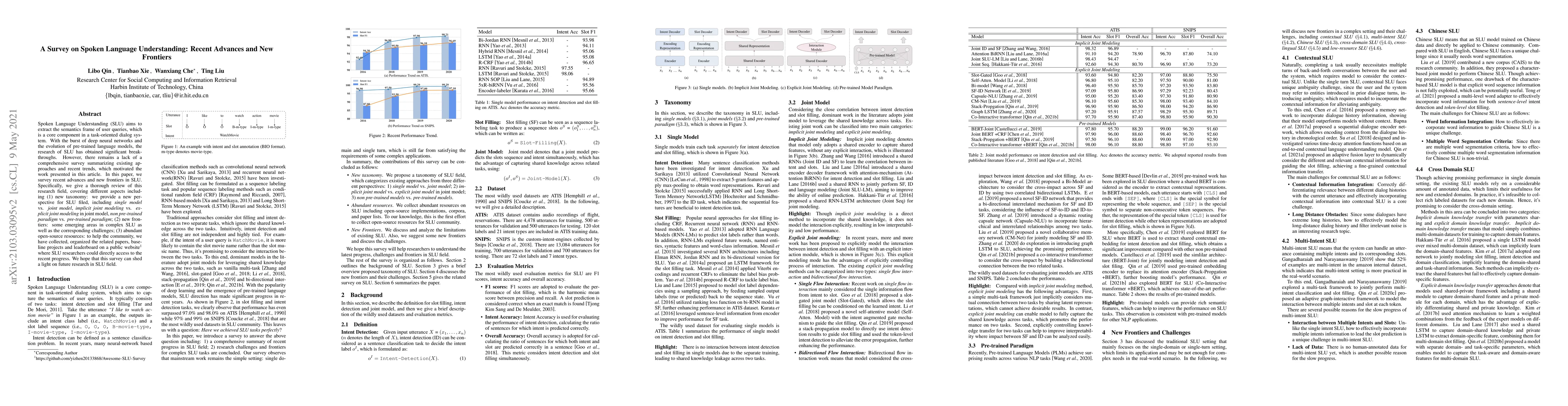 This paper surveys recent advances in Spoken Language Understanding (SLU), highlighting new taxonomies, emerging research frontiers, and open-source resources to aid the SLU community. It aims to provide a comprehensive overview of the current state-of-the-art and challenges in the field.