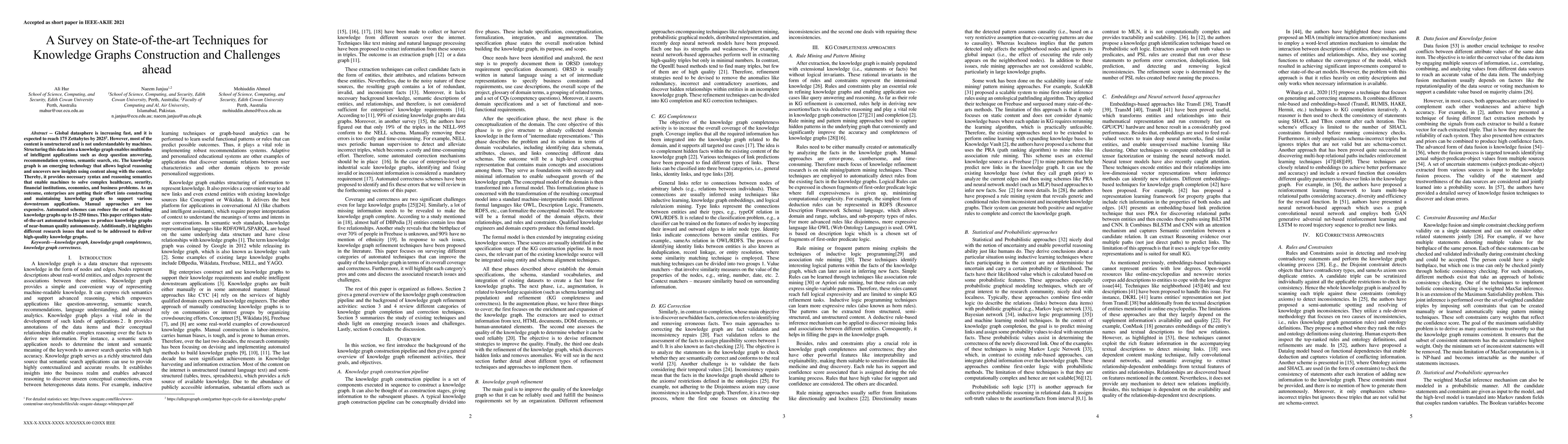 Researchers explore the state-of-the-art techniques for building knowledge graphs, a key technology for structured data analysis, with a focus on reducing manual efforts and increasing efficiency. The paper highlights challenges and future research directions to deliver high-quality, near-human quality knowledge graphs autonomously.