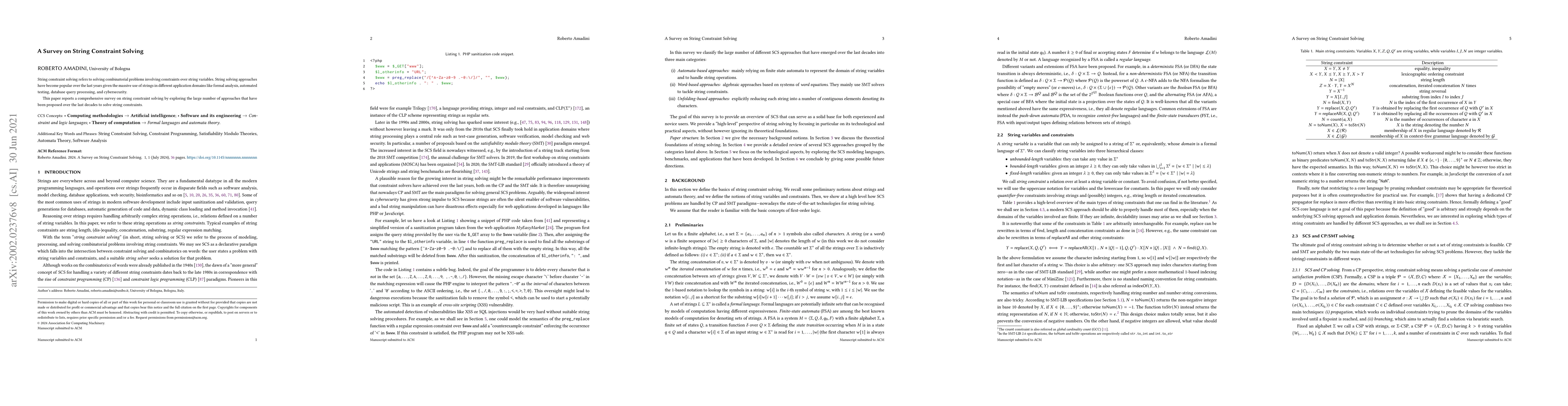 This paper provides a comprehensive survey on string constraint solving, reviewing various approaches developed over the years to address combinatorial problems involving string variables, which are widely used in domains such as formal analysis, automated testing, database query processing, and cybersecurity.