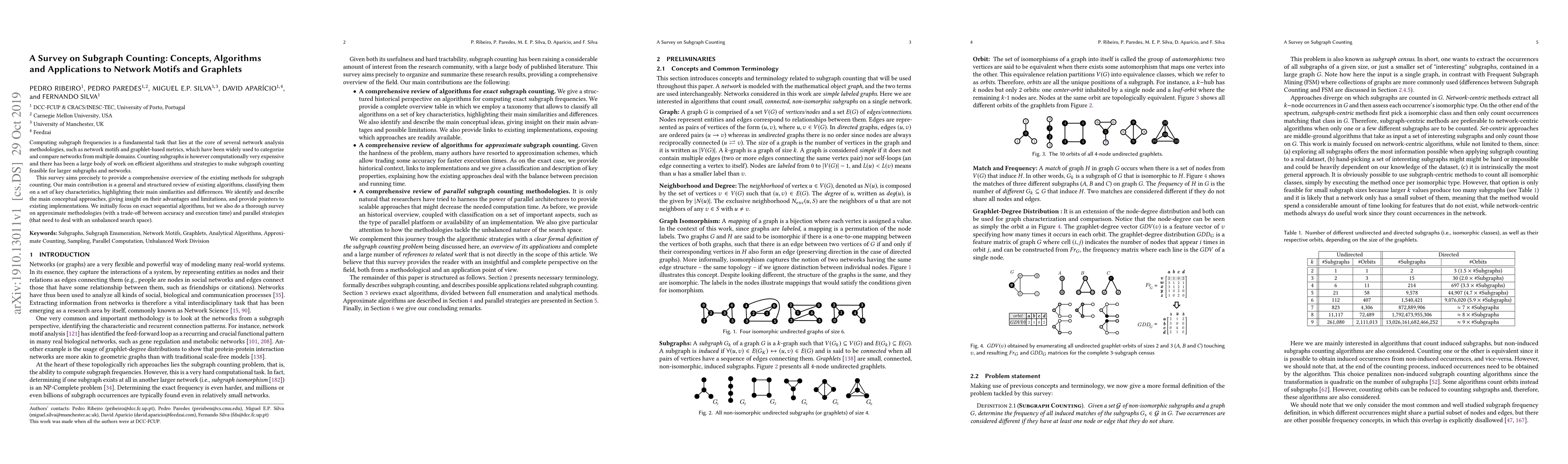 This survey paper reviews existing methods for subgraph counting in network analysis, highlighting algorithms and strategies for efficient computation of subgraph frequencies. It provides a comprehensive overview of exact sequential algorithms, approximate methodologies, and parallel strategies for counting subgraphs.