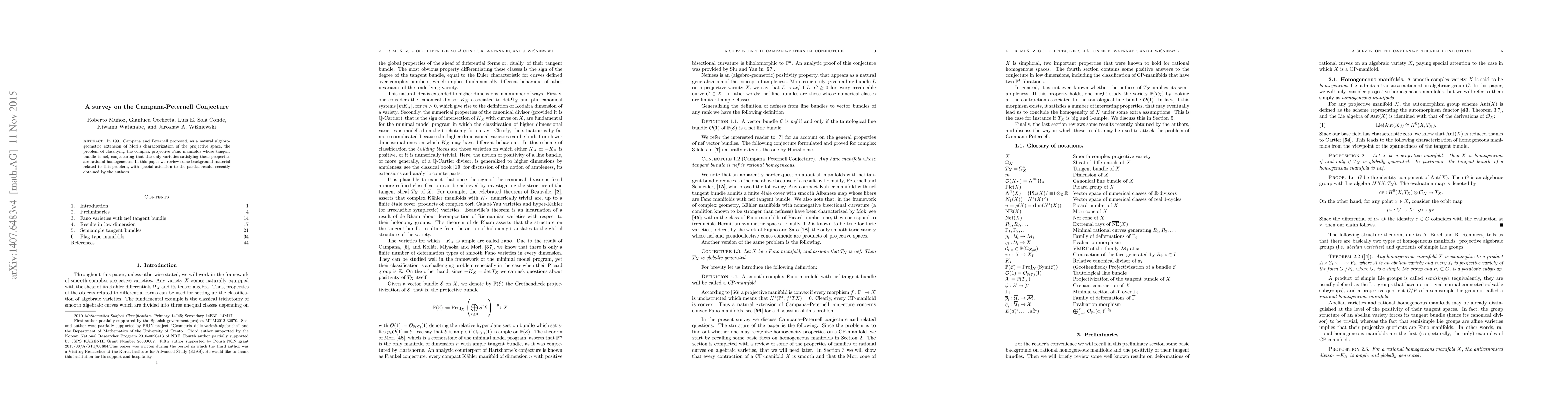 In 1991 Campana and Peternell proposed, as a natural algebro-geometric extension of Mori's characterization of the projective space, the problem of classifying the complex projective Fano manifolds whose tangent bundle is nef, conjecturing that the only varieties satisfying these properties are rational homogeneous. In this paper we review some background material related to this problem, with special attention to the partial results recently obtained by the authors.