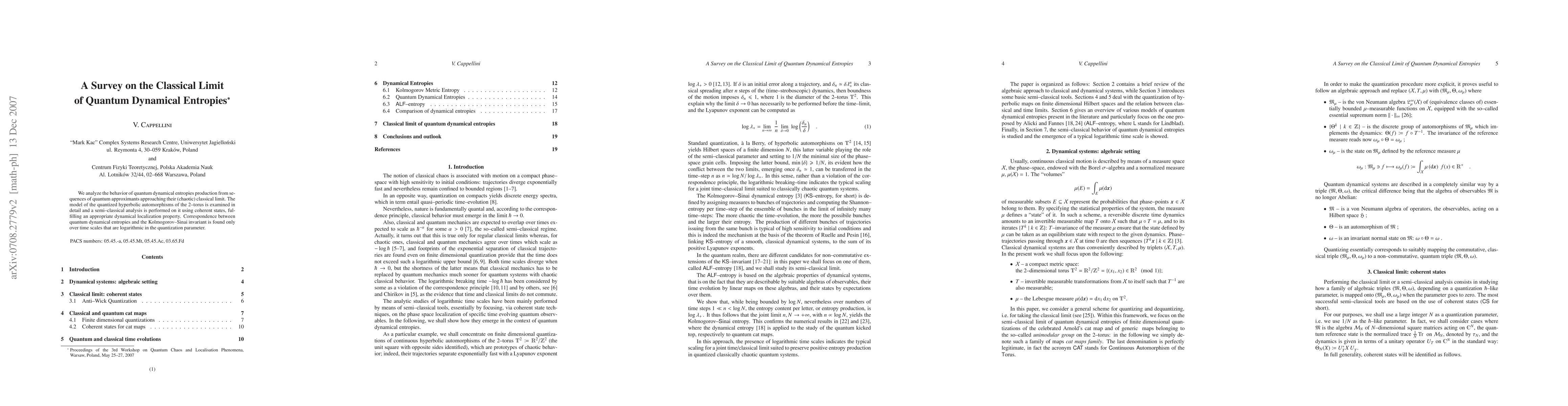 We analyze the behavior of quantum dynamical entropies production from sequences of quantum approximants approaching their (chaotic) classical limit. The model of the quantized hyperbolic automorphisms of the 2-torus is examined in detail and a semi-classical analysis is performed on it using coherent states, fulfilling an appropriate dynamical localization property. Correspondence between quantum dynamical entropies and the Kolmogorov-Sinai invariant is found only over time scales that are logarithmic in the quantization parameter.