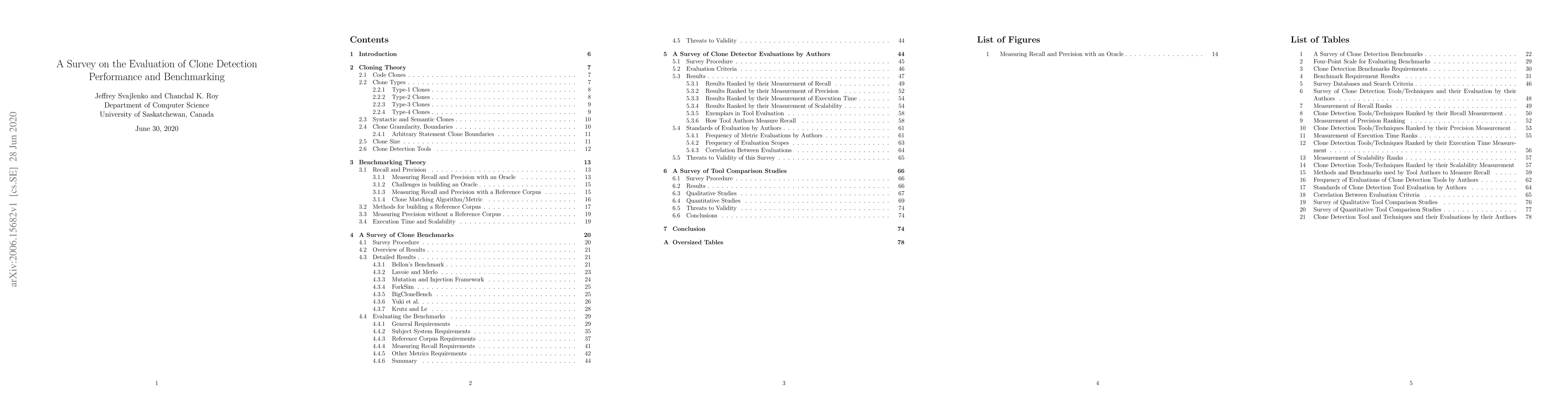This paper surveys clone detection benchmarks and evaluates the performance metrics of clone detection tools, finding that many authors do not adequately measure recall, precision, execution time, and scalability. It identifies exemplary works that best evaluate these metrics and highlights the need for improved evaluation practices in the field.