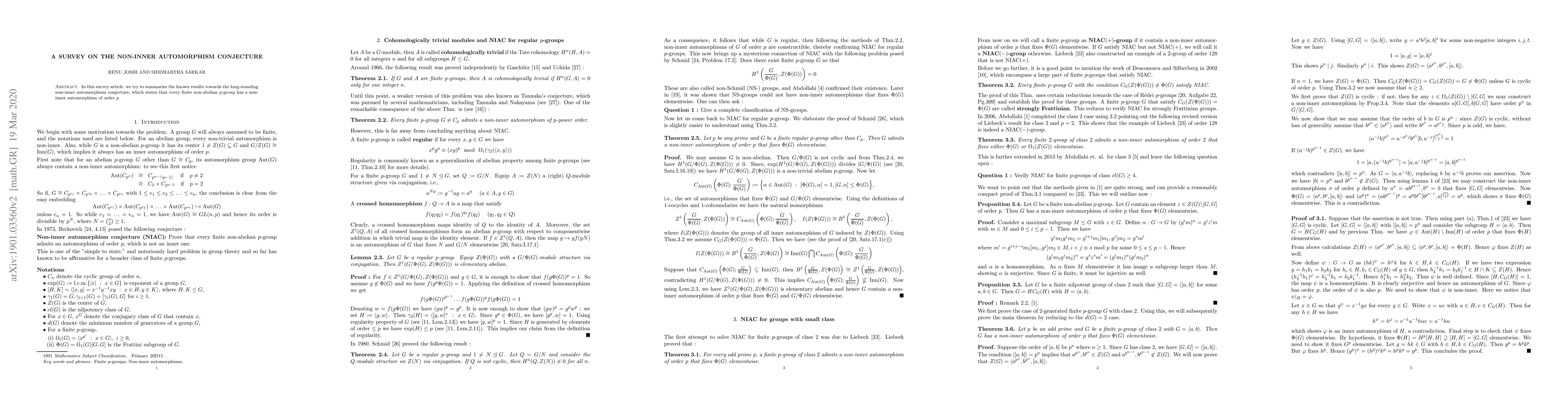 In this survey article, we try to summarize the known results towards the long-standing non-inner automorphism conjecture, which states that every finite non-abelian $p$-group has a non-inner automorphism of order $p$.