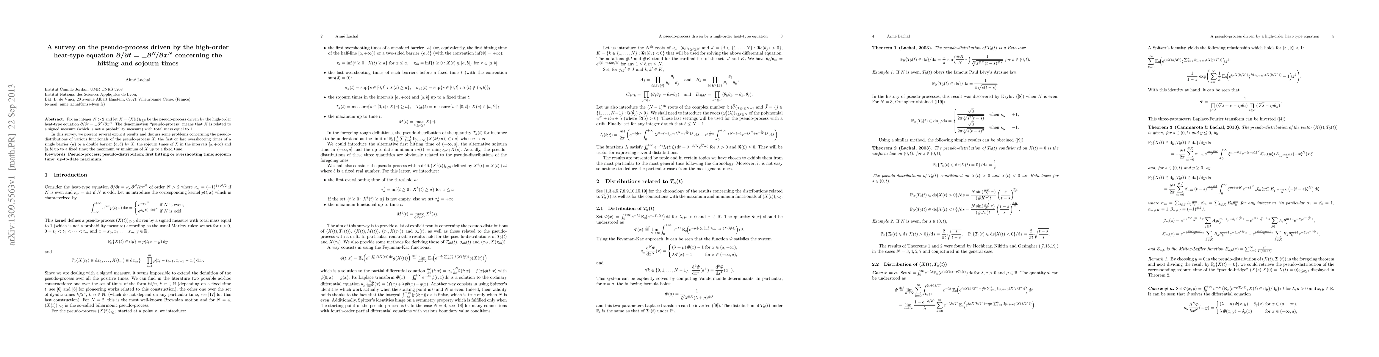 Fix an integer n>2 and let $(X(t))_{t\ge 0}$ be the pseudo-process driven by the high-order heat-type equation $\partial/\partial t=\pm\partial^N/\partial x^N$. The denomination "pseudo-process" means that $(X(t))_{t\ge 0}$ is related to a signed measure (which is not a probability measure) with total mass equal to 1. In this note, we present some results and discuss some problems concerning the pseudo-distributions of the first overshooting times of a single barrier $\{a\}$ or a double barrier $\{a,b\}$ by $(X(t))_{t\ge 0}$, as well as those of the sojourn times of $(X(t))_{t\ge 0}$ in the intervals $[a,+\infty)$ and $[a,b]$ up to a fixed time.