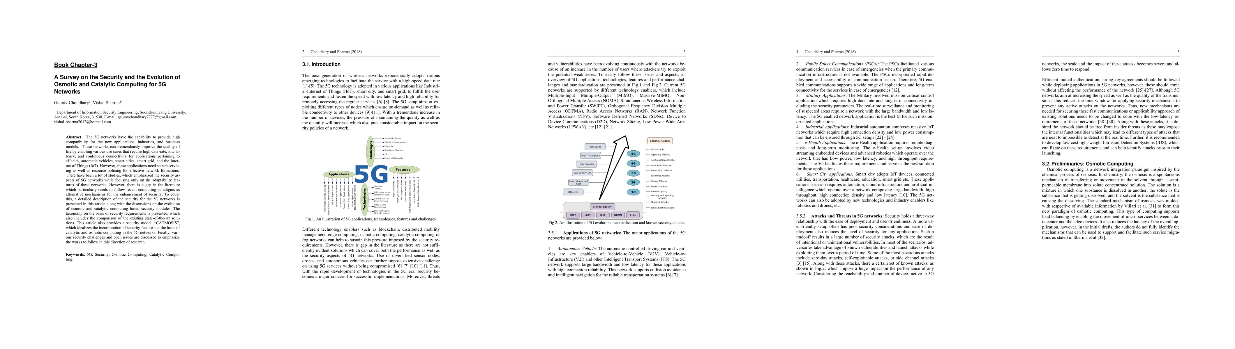 This paper surveys the security aspects of 5G networks, highlighting the evolution of osmotic and catalytic computing for enhanced security. It proposes a new security model, "CATMOSIS," integrating catalytic and osmotic computing, and discusses remaining challenges and future research directions.