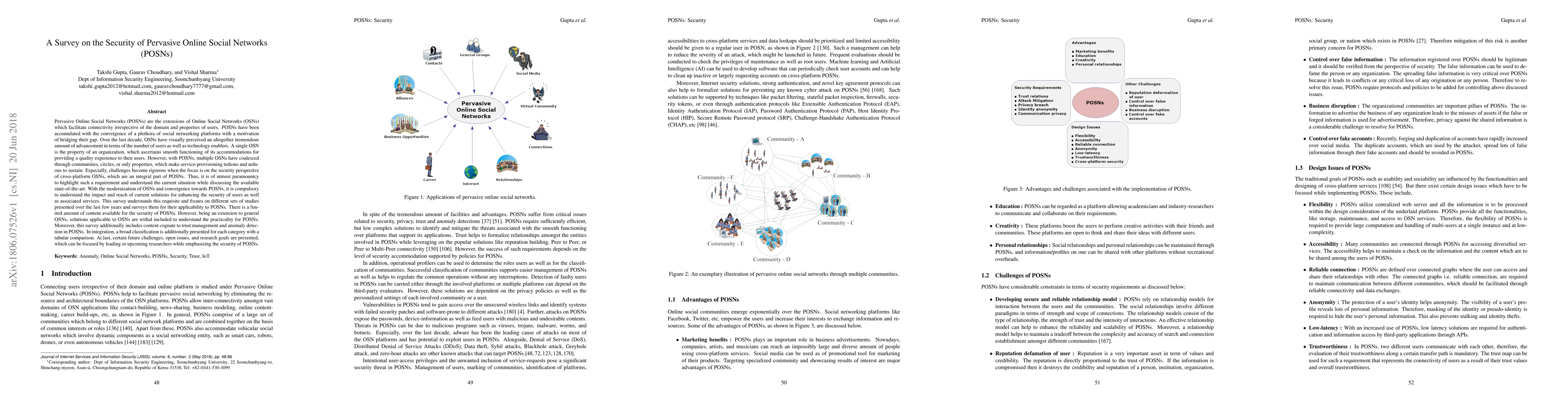Pervasive Online Social Networks (POSNs) are the extensions of Online Social Networks (OSNs) which facilitate connectivity irrespective of the domain and properties of users. POSNs have been accumulated with the convergence of a plethora of social networking platforms with a motivation of bridging their gap. Over the last decade, OSNs have visually perceived an altogether tremendous amount of advancement in terms of the number of users as well as technology enablers. A single OSN is the property of an organization, which ascertains smooth functioning of its accommodations for providing a quality experience to their users. However, with POSNs, multiple OSNs have coalesced through communities, circles, or only properties, which make service-provisioning tedious and arduous to sustain. Especially, challenges become rigorous when the focus is on the security perspective of cross-platform OSNs, which are an integral part of POSNs. Thus, it is of utmost paramountcy to highlight such a requirement and understand the current situation while discussing the available state-of-the-art. With the modernization of OSNs and convergence towards POSNs, it is compulsory to understand the impact and reach of current solutions for enhancing the security of users as well as associated services. This survey understands this requisite and fixates on different sets of studies presented over the last few years and surveys them for their applicability to POSNs...