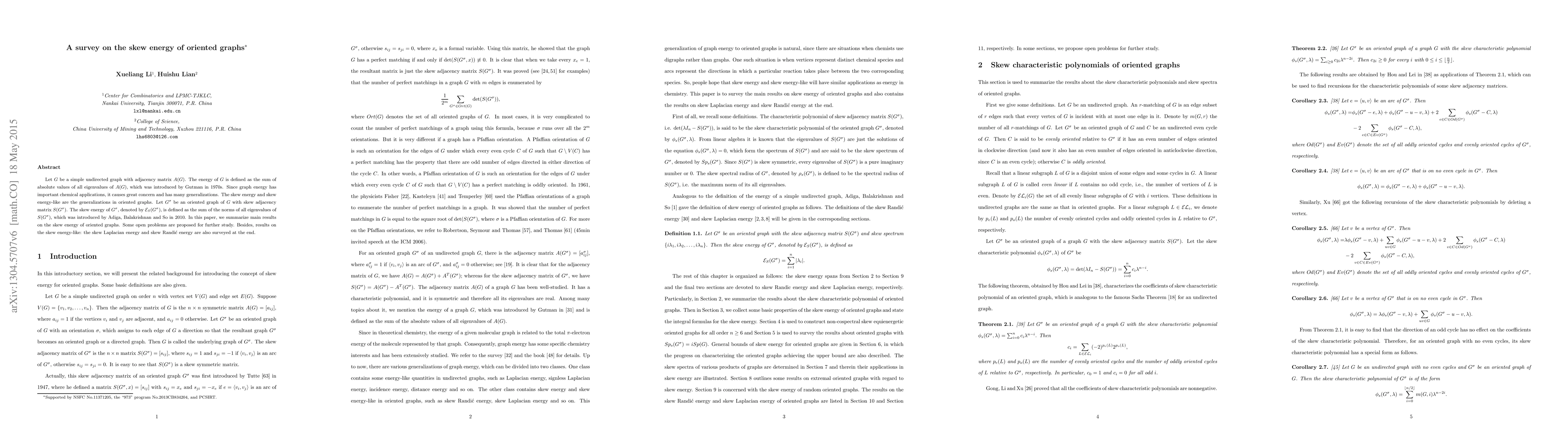 This paper surveys the concept of skew energy in oriented graphs, defined as the sum of the norms of eigenvalues of the skew adjacency matrix, and reviews related generalizations such as skew Laplacian and skew Randić energy. It also proposes open problems for future research.