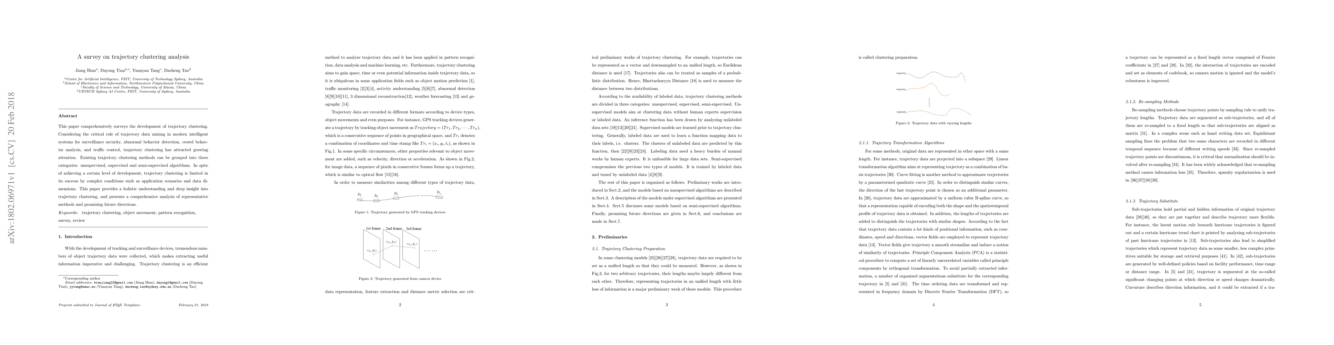 This paper surveys the development of trajectory clustering methods, categorizing them into unsupervised, supervised, and semi-supervised approaches. It highlights the challenges faced in practical applications and offers insights into future directions for trajectory clustering research.