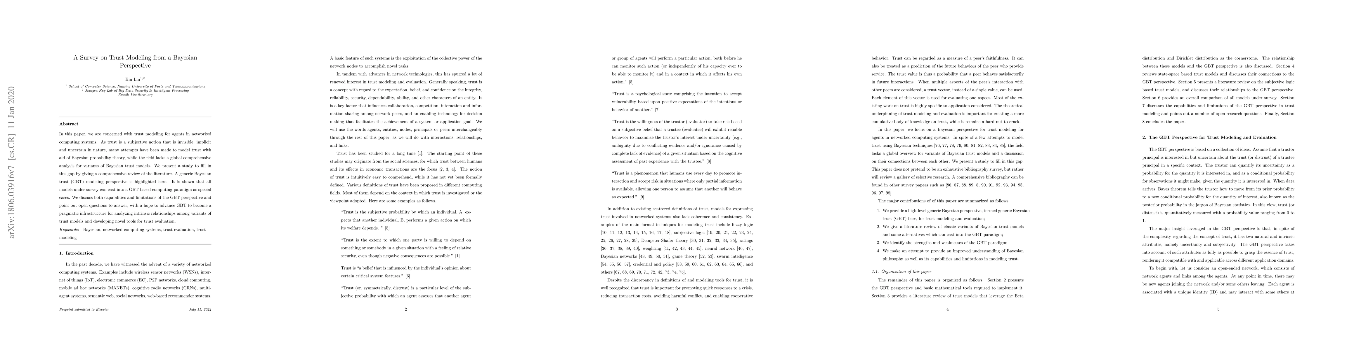 This paper conducts a comprehensive review of Bayesian trust models used in networked computing systems, demonstrating how all surveyed models can be framed within a generic Bayesian trust (GBT) modeling perspective. It highlights the GBT's potential and limitations while identifying open questions to advance its use as a foundational framework for trust evaluation.