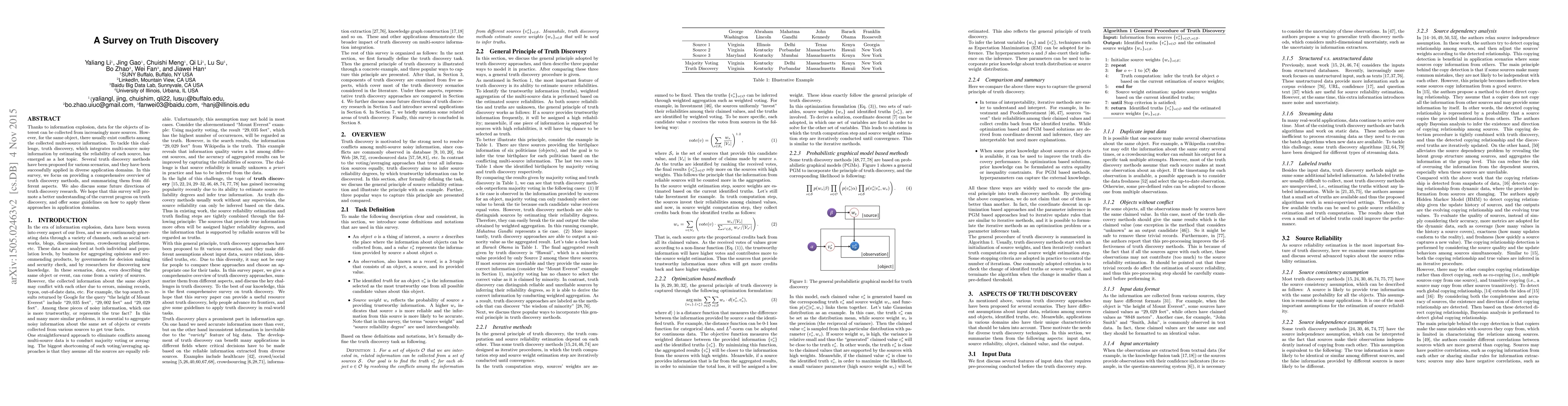 This paper surveys truth discovery methods for integrating multi-source noisy information, providing a comprehensive overview of current approaches and future directions.