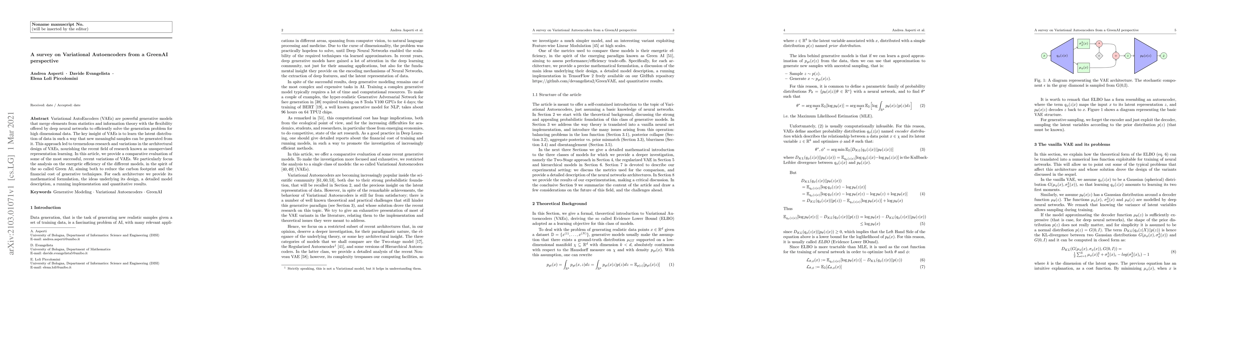 The paper presents a comparative evaluation of recent Variational Autoencoder (VAE) variations, focusing on their energetic efficiency in line with Green AI principles, aiming to reduce carbon footprint and financial costs.