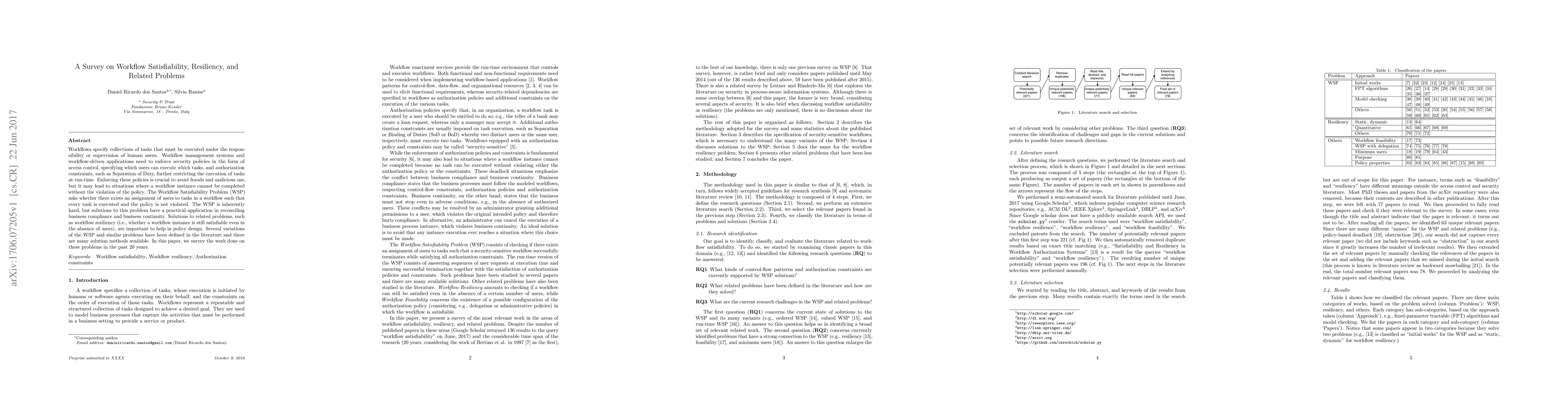 This paper surveys the Workflow Satisfiability Problem (WSP) and its variations, focusing on enforcing security policies in workflow management systems while ensuring business continuity and resiliency. It reviews solutions and methods developed over the past two decades to address these challenges.