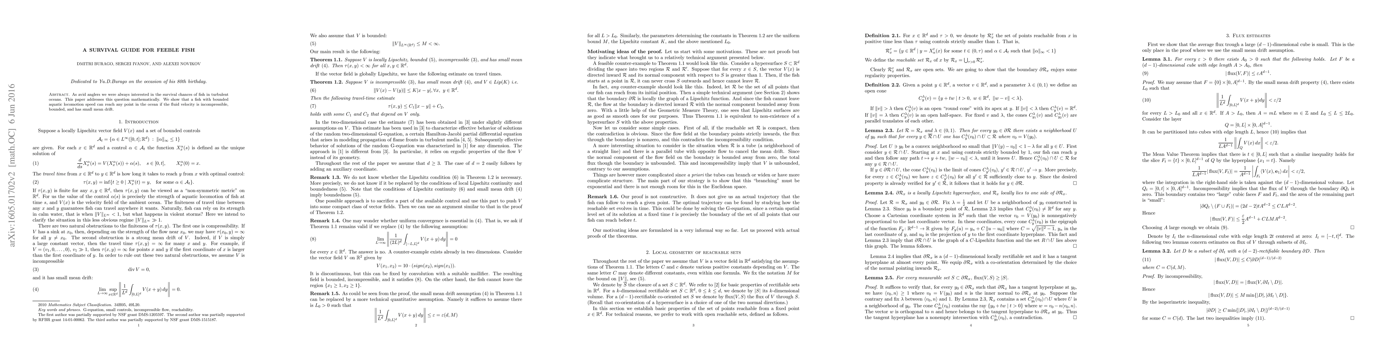 As avid anglers we were always interested in the survival chances of fish in turbulent oceans. This paper addresses this question mathematically. We show that a fish with bounded aquatic locomotion speed can reach any point in the ocean if the fluid velocity is incompressible, bounded, and has small mean drift.