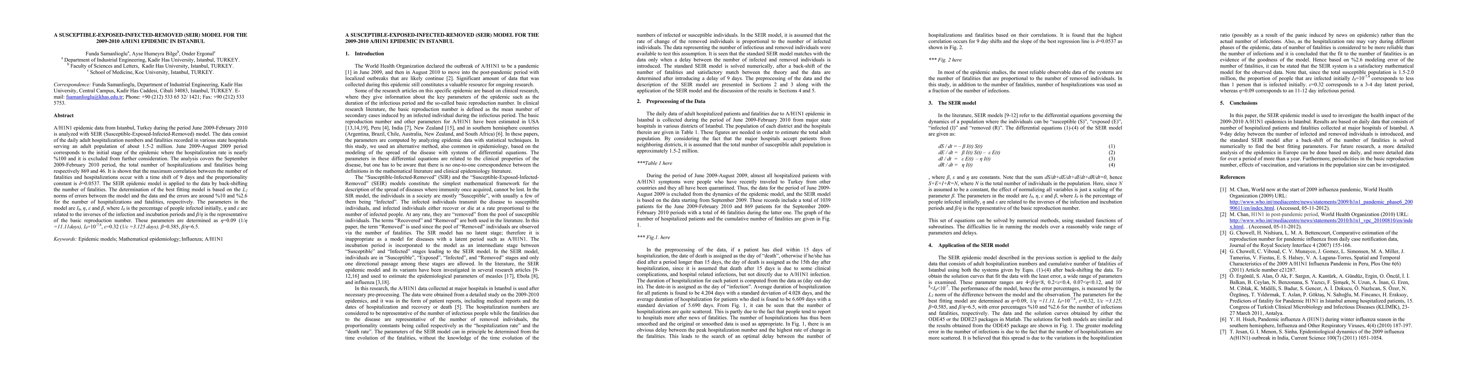 This research applies the SEIR model to A/H1N1 epidemic data from Istanbul (Sept 2009-Feb 2010), finding a 9-day time shift and proportionality constant (δ=0.0537) between fatalities and hospitalizations. The model parameters, including infection and incubation periods, are determined with %10 and %2.6 error margins for hospitalizations and fatalities, respectively.