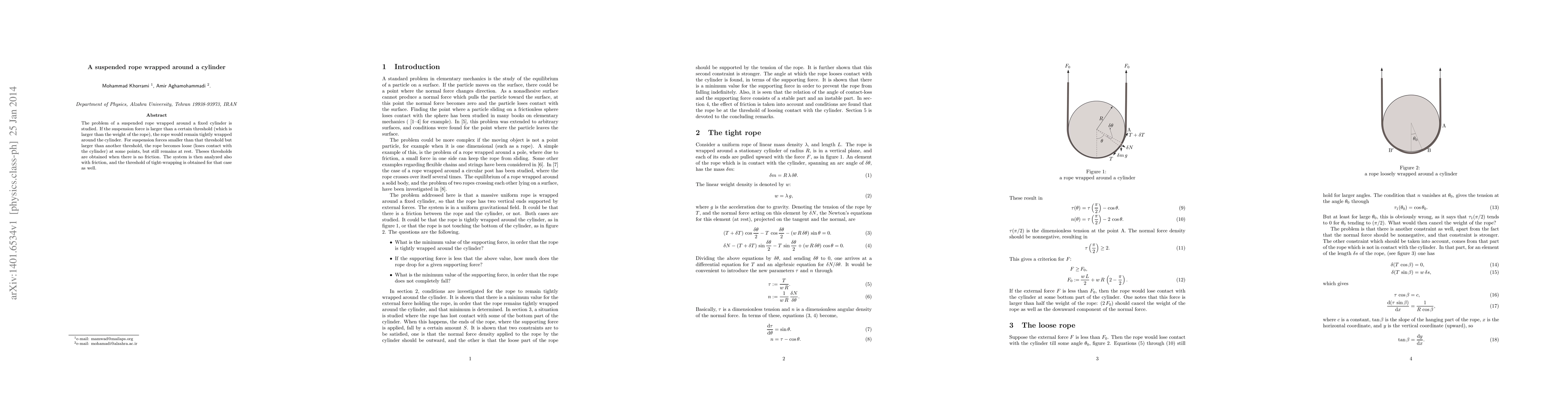 This paper investigates the dynamics of a suspended rope wrapped around a fixed cylinder, identifying thresholds for the suspension force that determine whether the rope remains tightly wrapped or becomes loose, with and without friction considered.
