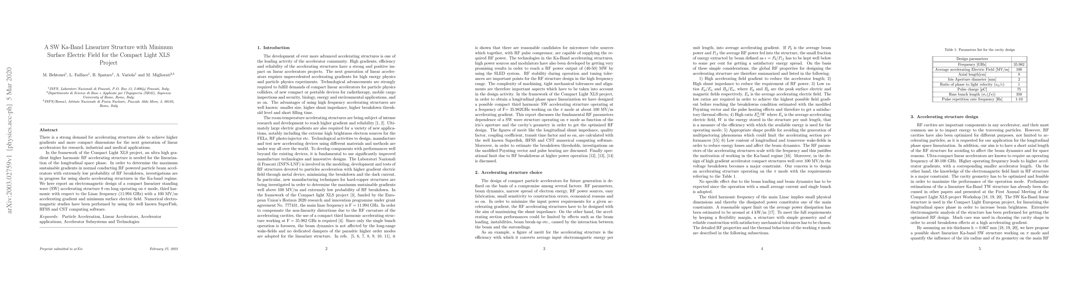Researchers designed a compact Ka-band linearizer structure for high-gradients in particle beam accelerators, achieving 100 MV/m with minimal surface electric field.