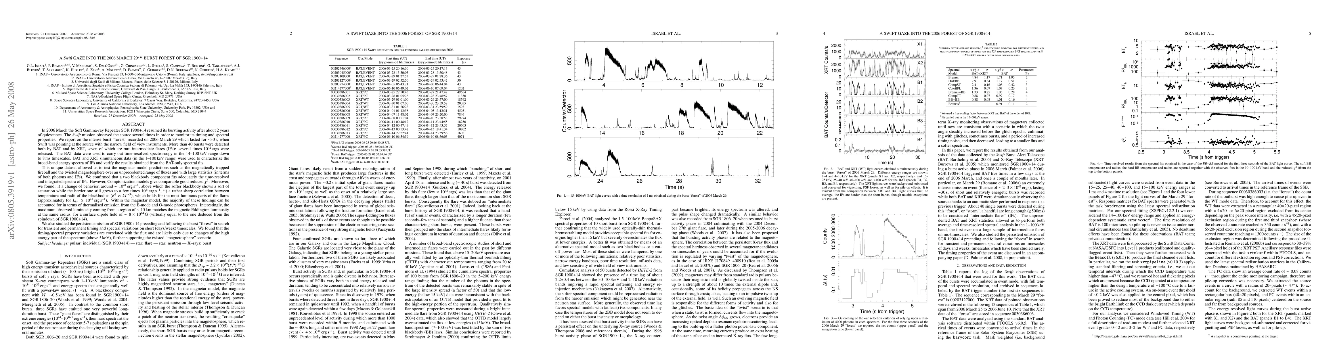 We report on the intense burst ``forest'' recorded on 2006 March 29 which lasted for ~30s. More than 40 bursts were detected both by BAT and by XRT, seven of which are rare intermediate flares (IFs): several times 10^{42} ergs were released. The BAT data were used to carry out time-resolved spectroscopy in the 14-100keV range down to 8ms timescales. This unique dataset allowed us to test the magnetar model predictions such as the magnetically trapped fireball and the twisted magnetosphere over an unprecedented range of fluxes and with large statistics (in terms of both photons and IFs). We confirmed that a two blackbody component fits adequately the time-resolved and integrated spectra of IFs. However, Comptonization models give comparable good reduced chi^2. Moreover, we found: i) a change of behavior, around ~10^{41} erg/s, above which the softer blackbody shows a sort of saturation while the harder one still grows to a few times 10^{41} erg/s; ii) a rather sharp correlation between temperature and radii of the blackbodies (R^2 prop kT^{-3}), which holds for the most luminous parts of the flares (approximately for L_{tot} > 10^{41} erg/s). Within the magnetar model, the majority of these findings can be accounted for in terms of thermalised emission from the E-mode and O-mode photospheres. Interestingly, the maximum observed luminosity coming from a region of ~15km matches the magnetic Eddington luminosity at the same radius, for a surface dipole field of ~8 x 10^{14} G (virtually equal to the one deduced from the spindown of SGR 1900+14).
