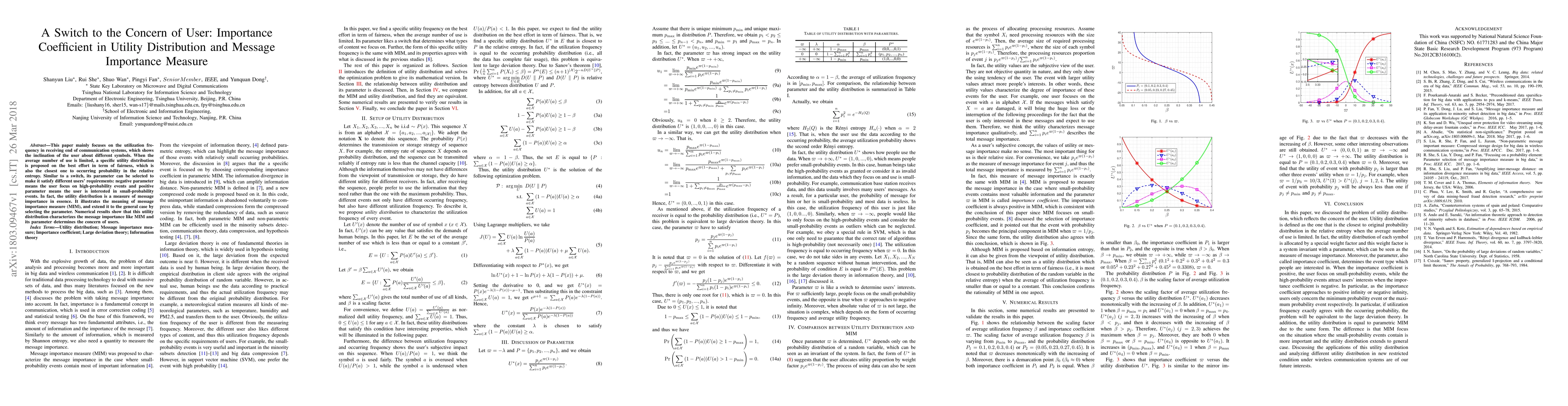 This paper mainly focuses on the utilization frequency in receiving end of communication systems, which shows the inclination of the user about different symbols. When the average number of use is limited, a specific utility distribution is proposed on the best effort in term of fairness, which is also the closest one to occurring probability in the relative entropy. Similar to a switch, its parameter can be selected to make it satisfy different users' requirements: negative parameter means the user focus on high-probability events and positive parameter means the user is interested in small-probability events. In fact, the utility distribution is a measure of message importance in essence. It illustrates the meaning of message importance measure (MIM), and extend it to the general case by selecting the parameter. Numerical results show that this utility distribution characterizes the message importance like MIM and its parameter determines the concern of users.