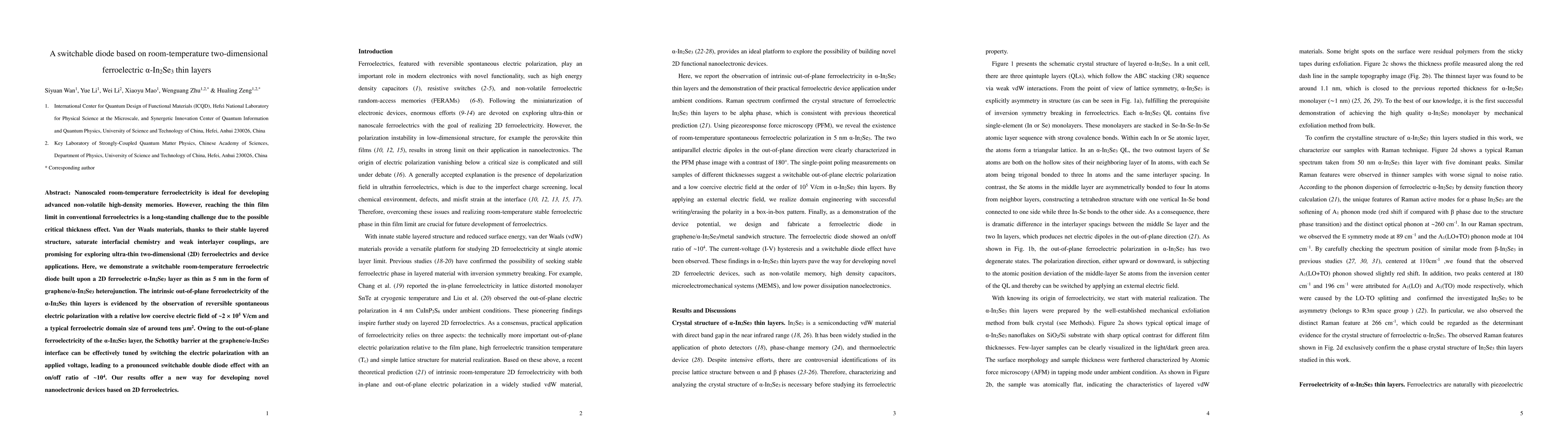 The paper introduces a novel switchable diode based on a 5 nm thick 2D ferroelectric α-In2Se3 layer, demonstrating its potential for advanced nanoelectronic devices.