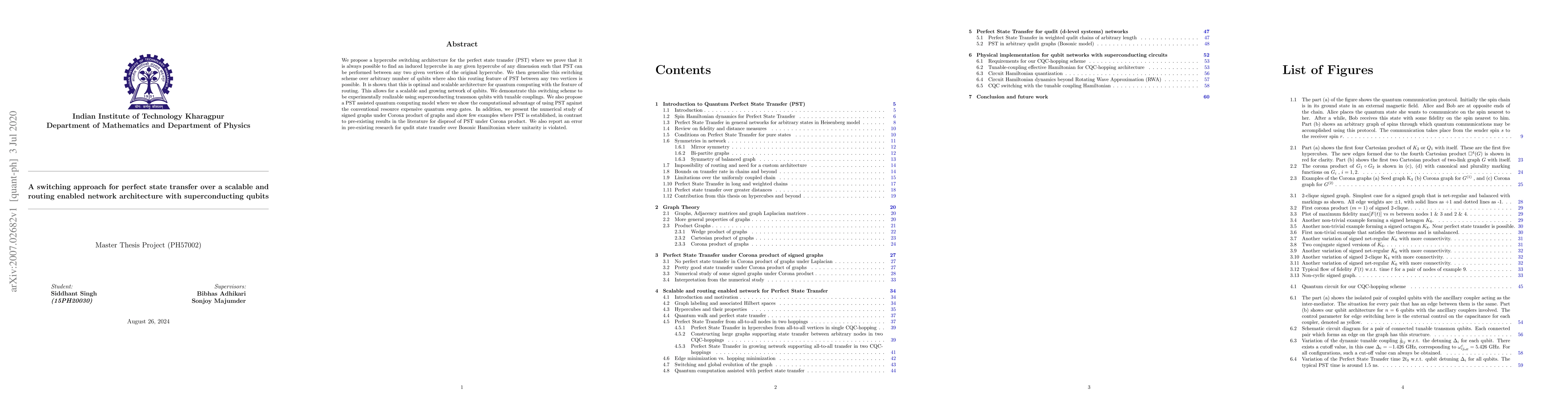 We propose a hypercube switching architecture for the perfect state transfer (PST) where we prove that it is always possible to find an induced hypercube in any given hypercube of any dimension such that PST can be performed between any two given vertices of the original hypercube. We then generalise this switching scheme over arbitrary number of qubits where also this routing feature of PST between any two vertices is possible. It is shown that this is optimal and scalable architecture for quantum computing with the feature of routing. This allows for a scalable and growing network of qubits. We demonstrate this switching scheme to be experimentally realizable using superconducting transmon qubits with tunable couplings. We also propose a PST assisted quantum computing model where we show the computational advantage of using PST against the conventional resource expensive quantum swap gates. In addition, we present the numerical study of signed graphs under Corona product of graphs and show few examples where PST is established, in contrast to pre-existing results in the literature for disproof of PST under Corona product. We also report an error in pre-existing research for qudit state transfer over Bosonic Hamiltonian where unitarity is violated.