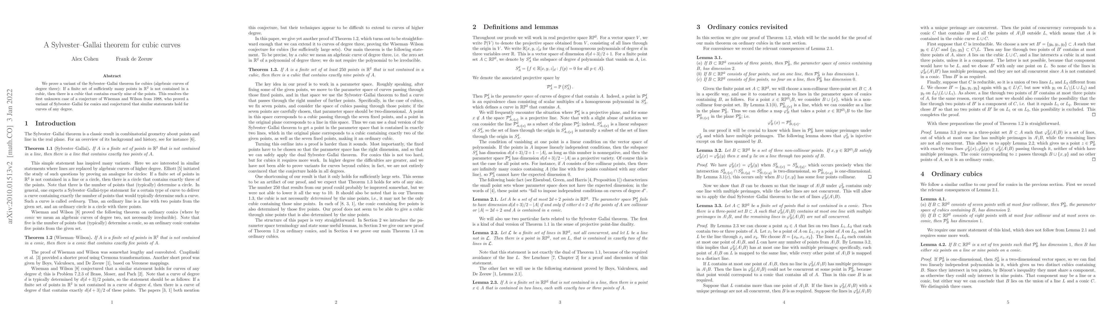 We prove a variant of the Sylvester-Gallai theorem for cubics (algebraic curves of degree three): If a finite set of sufficiently many points in $\mathbb{R}^2$ is not contained in a cubic, then there is a cubic that contains exactly nine of the points. This resolves the first unknown case of a conjecture of Wiseman and Wilson from 1988, who proved a variant of Sylvester-Gallai for conics and conjectured that similar statements hold for curves of any degree.