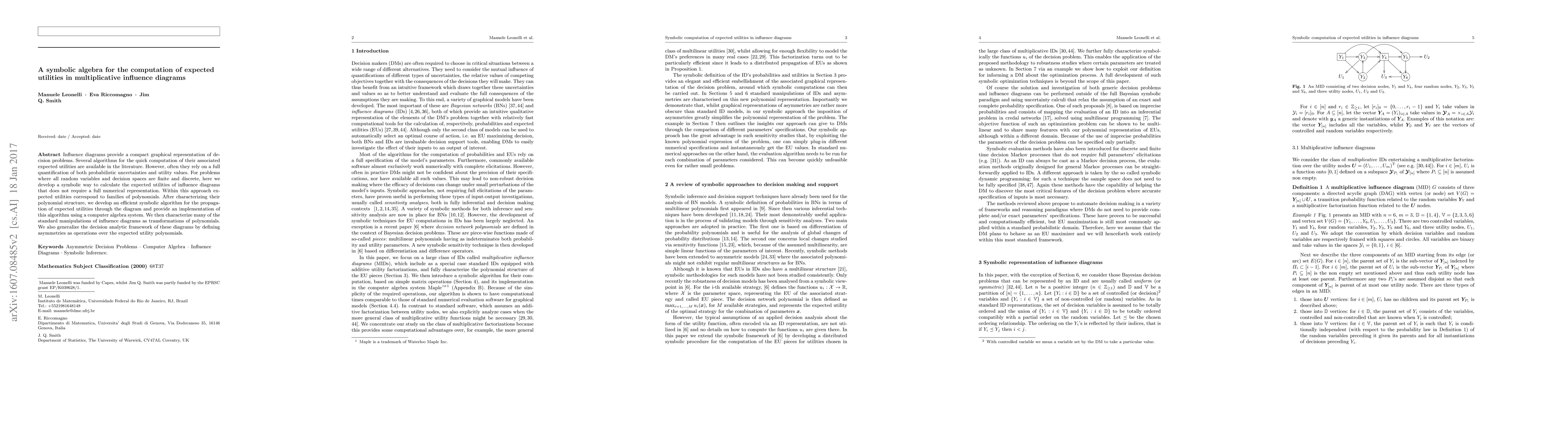 Researchers developed a symbolic algebra for efficiently computing expected utilities in influence diagrams without requiring numerical representations, enabling faster analysis of decision problems with finite and discrete variables.