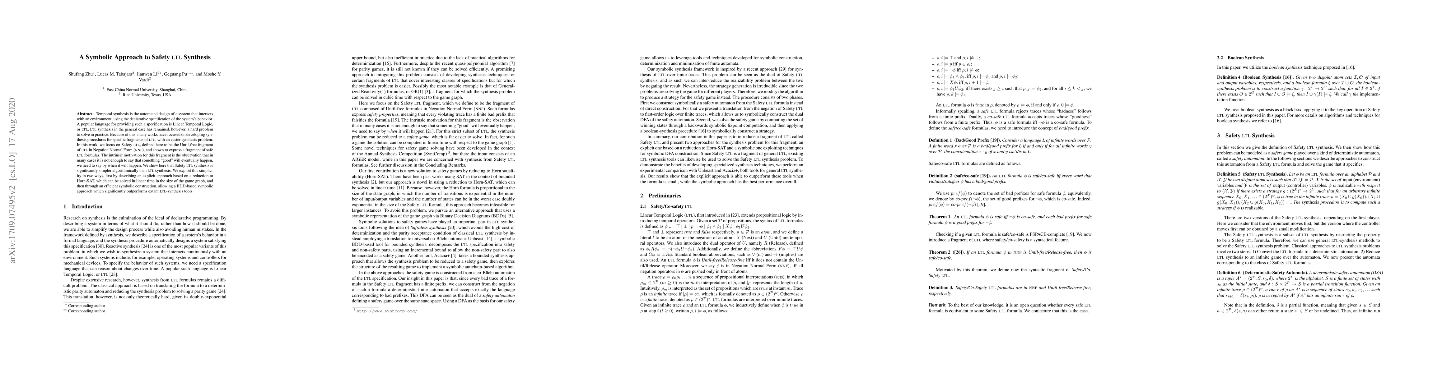 This research presents a symbolic approach to synthesizing systems from Safety Linear Temporal Logic (LTL) specifications, which excludes Until operators. It simplifies synthesis by leveraging a Horn-SAT reduction and BDD-based symbolic construction, outperforming existing LTL-synthesis tools.