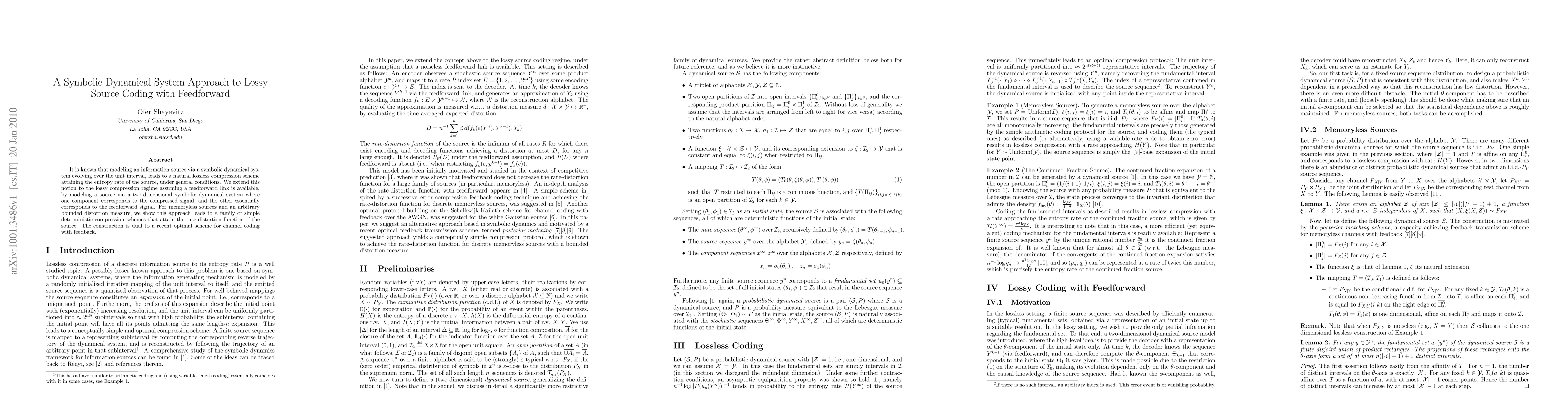 Researchers develop a new approach to lossy compression that uses a symbolic dynamical system to model a source with both compressed and feedforward signals, leading to simple deterministic compression schemes that achieve optimal rates-distortion tradeoffs.
