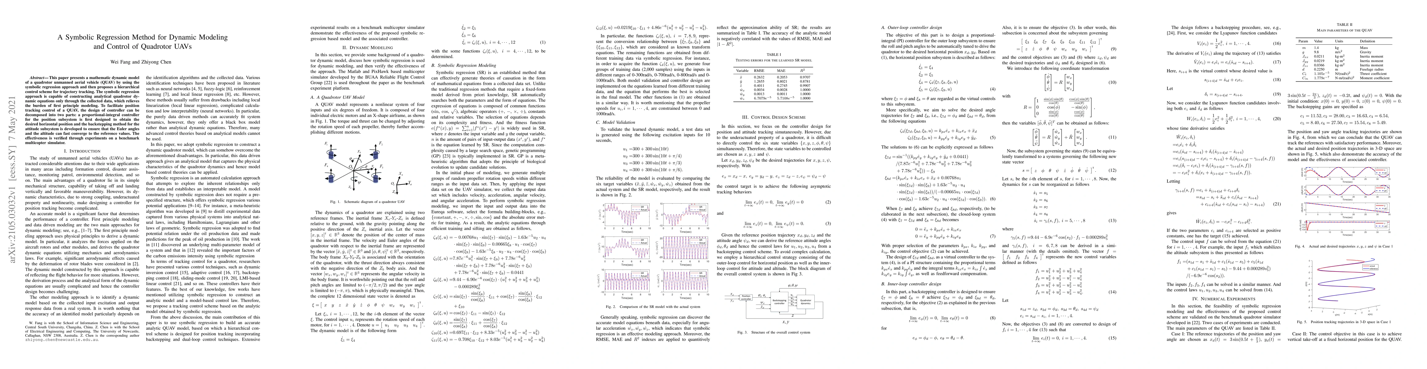 A new method for modeling and controlling quadrotor UAVs uses symbolic regression to create an analytical dynamic model from data, allowing for efficient trajectory tracking with a hierarchical control scheme.