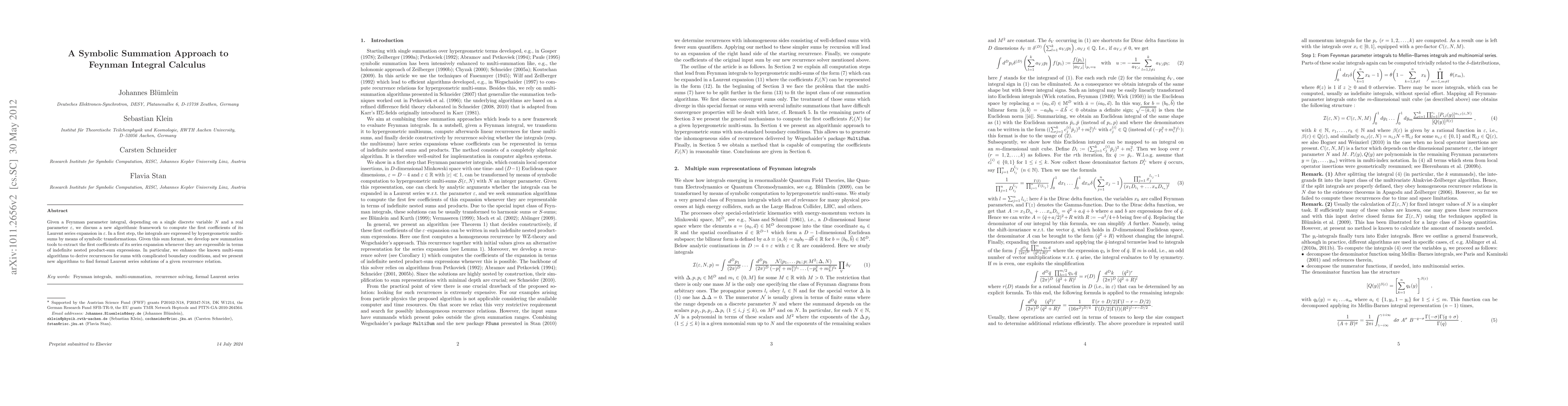 This paper introduces a symbolic summation approach to compute the initial coefficients of Feynman parameter integrals' Laurent series expansions. It transforms integrals into hypergeometric multi-sums and develops new summation tools to extract the first coefficients, enhancing existing algorithms for complex boundary conditions and recurrence relations.