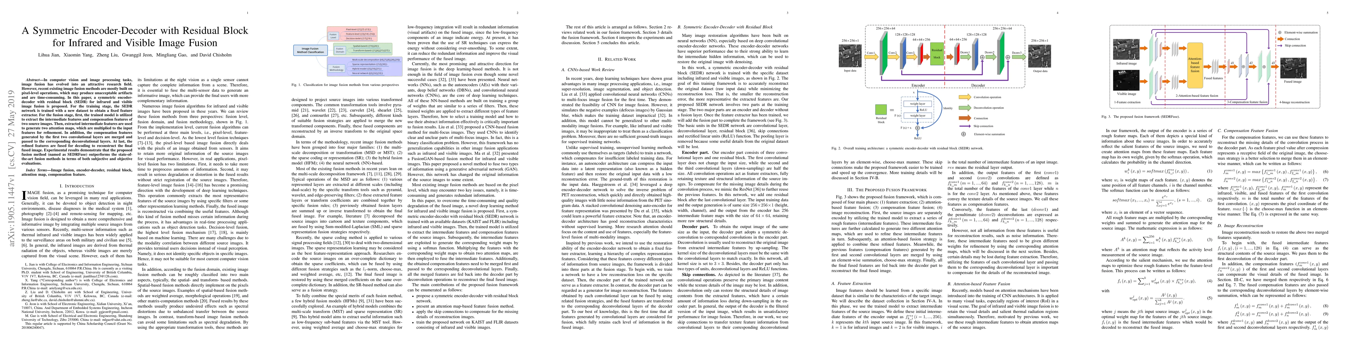 This paper proposes a symmetric encoder-decoder with residual block (SEDR) for fusing infrared and visible images, aiming to improve fusion quality and efficiency. The SEDRFuse method outperforms existing methods in both subjective and objective evaluations.